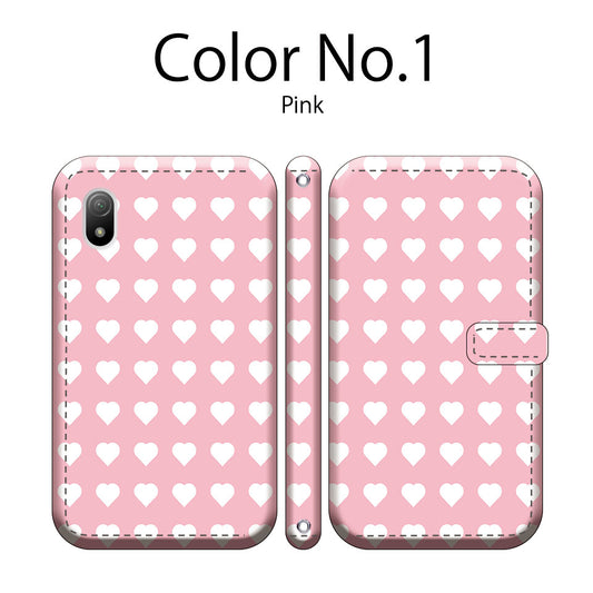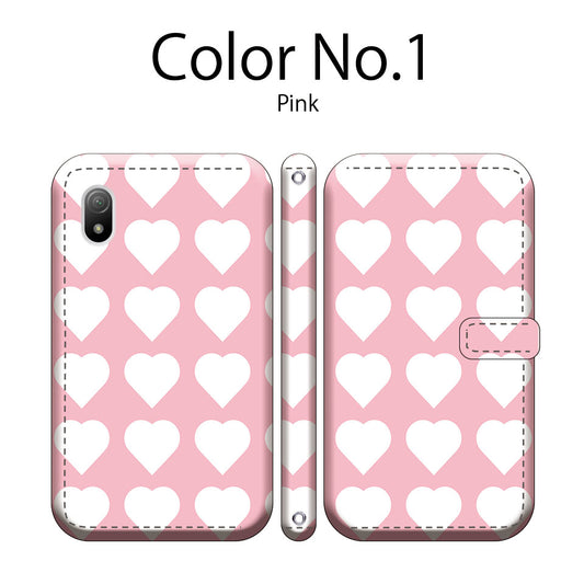 ほぼ全機種に対応!!手帳型スマホケース【小さめハート柄】【選べる10色】